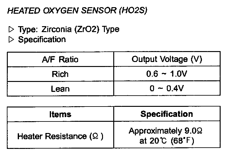 Oxygen Sensor: Specifications