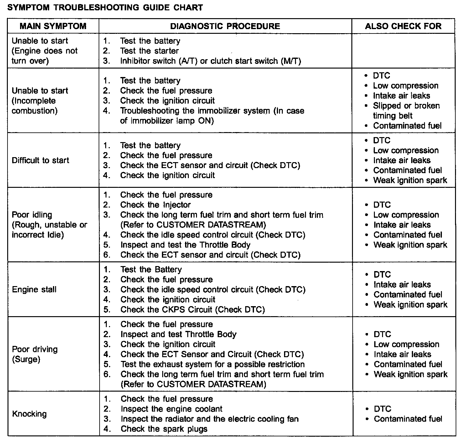 Symptom Troubleshooting Guide Chart Part 1: