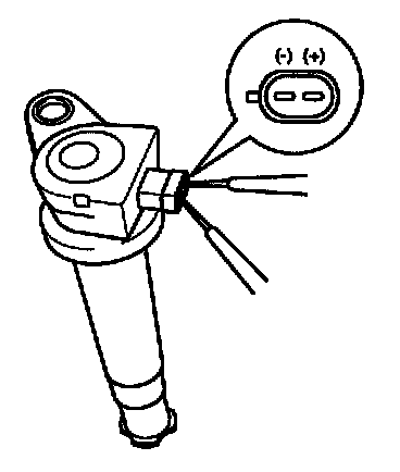 Measure the primary coil resistance between terminals (+) and (-).