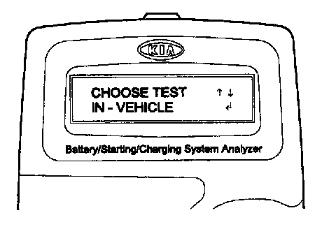2. The tester will ask if the battery is connected "IN A VEHICLE" or "OUT OF A VEHICLE". Make your selection by pressing the arrow buttons; then press ENTER.