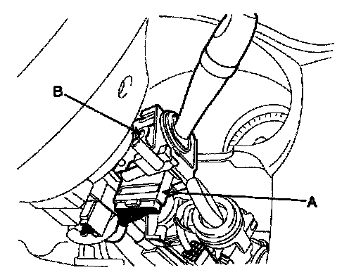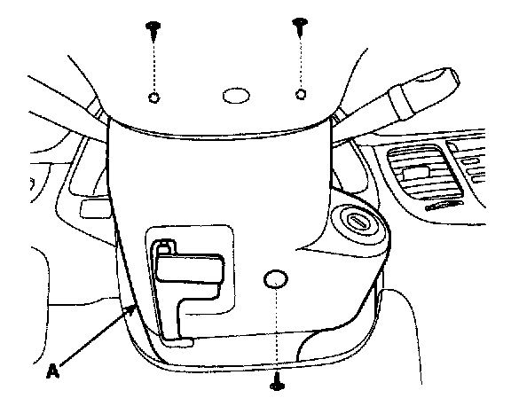 1. Remove the steering column upper and lower shrouds (A) after removing 3 screws.