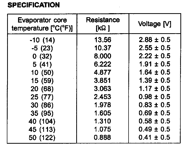EVAPORATOR TEMPERATURE SENSORINSPECTION