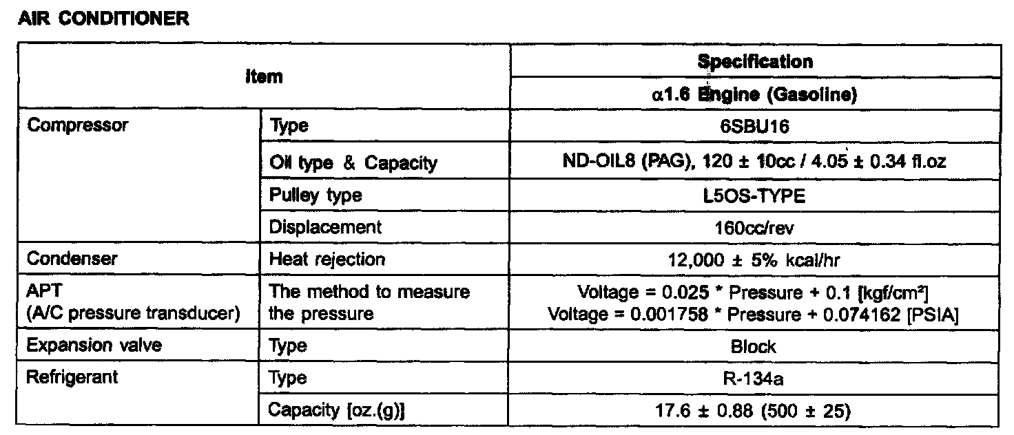 Air Conditioner Specification: