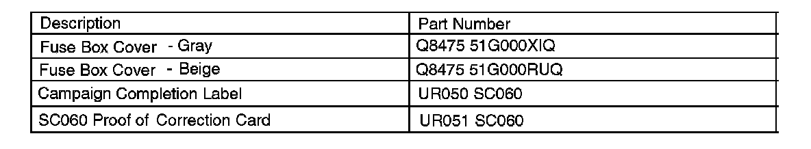 Recall SC060 - Fuse Box Cover Replacement