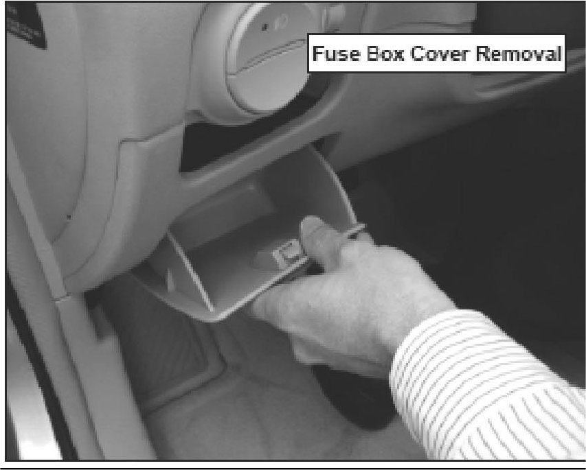 1. Open the fuse box cover, grab the top edge and pull up to release the two lower hinge points.