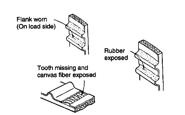 Inspect the belt closely. If the following problems are evident, replace the belt with a new one.
