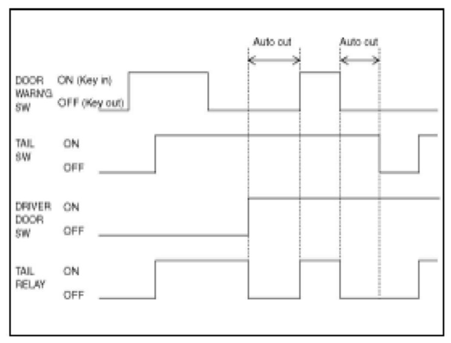 2. With the ignition switch ON, if the driver's door is opened and the ignition is switched to OFF, the tail lamp should be automatically turned OFF.