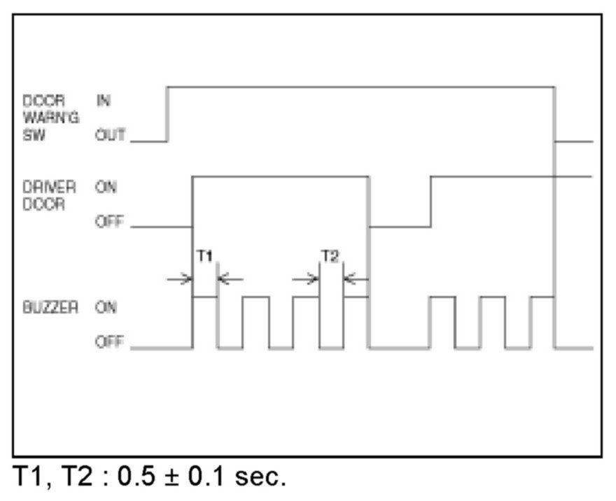 2. If the ignition key is removed, or the door is closed, the buzzer is switched OFF immediately.