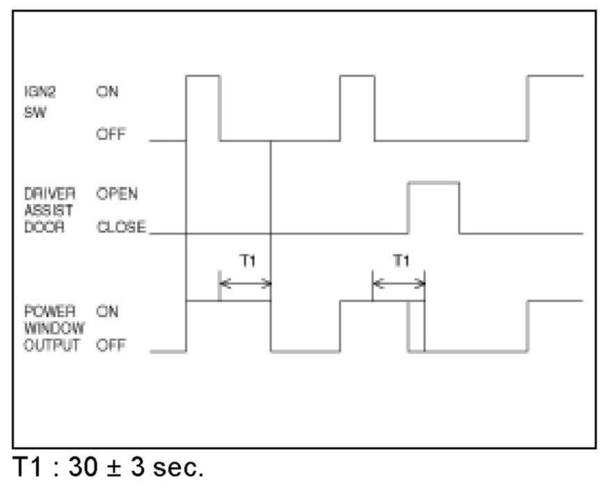 2. Related to Step 1), if the driver's door or assist door is opened, window power output is turned OFF immediately.
