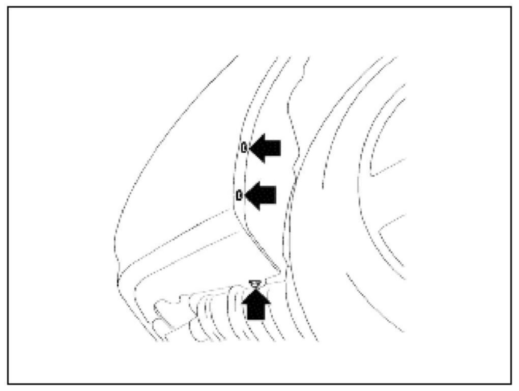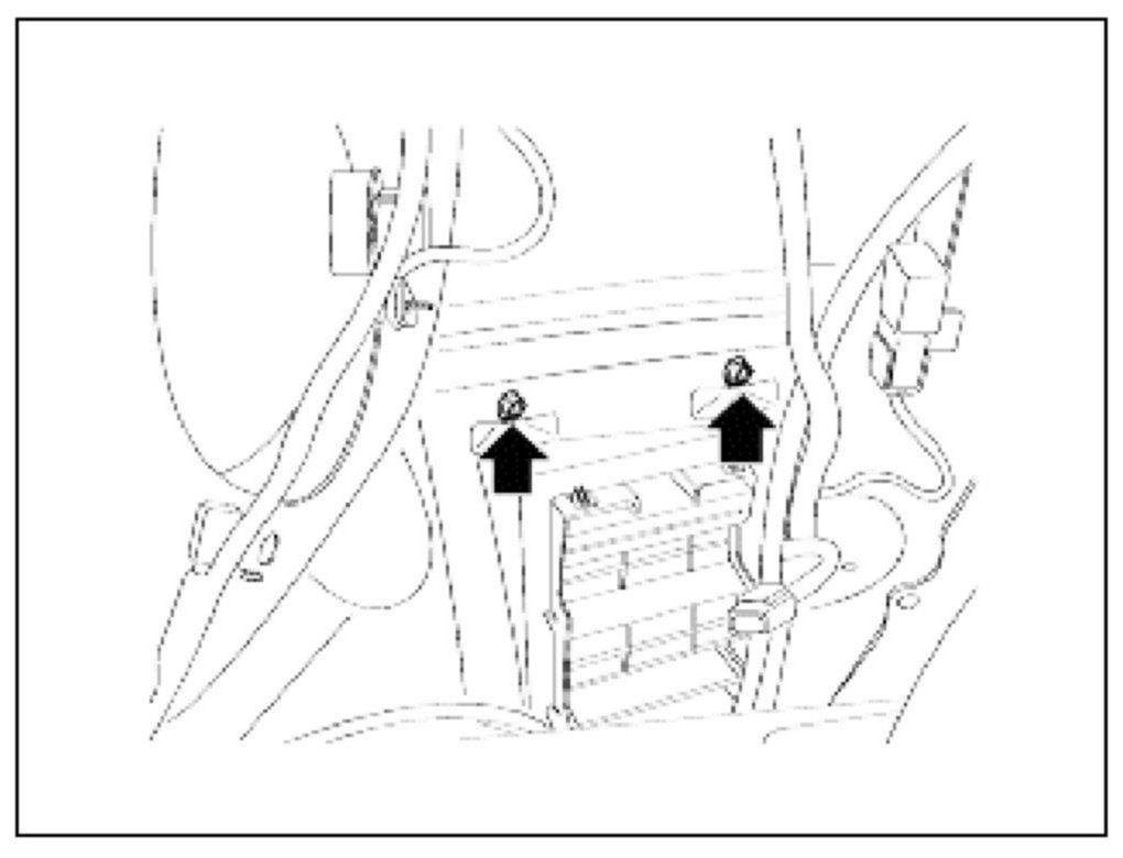 7. Remove bumper stay mounting bolts(2) from bottom of vehicle (RH).