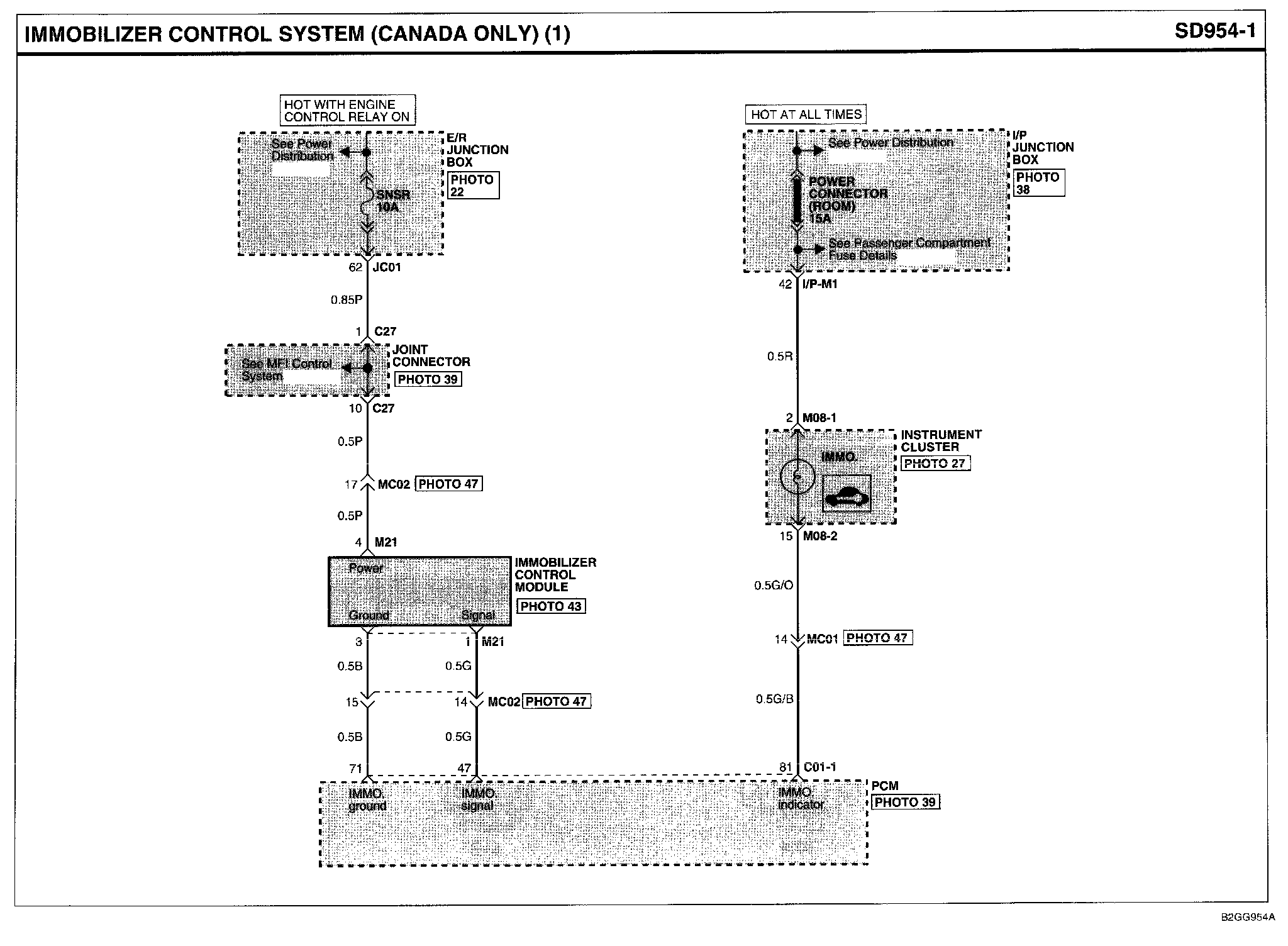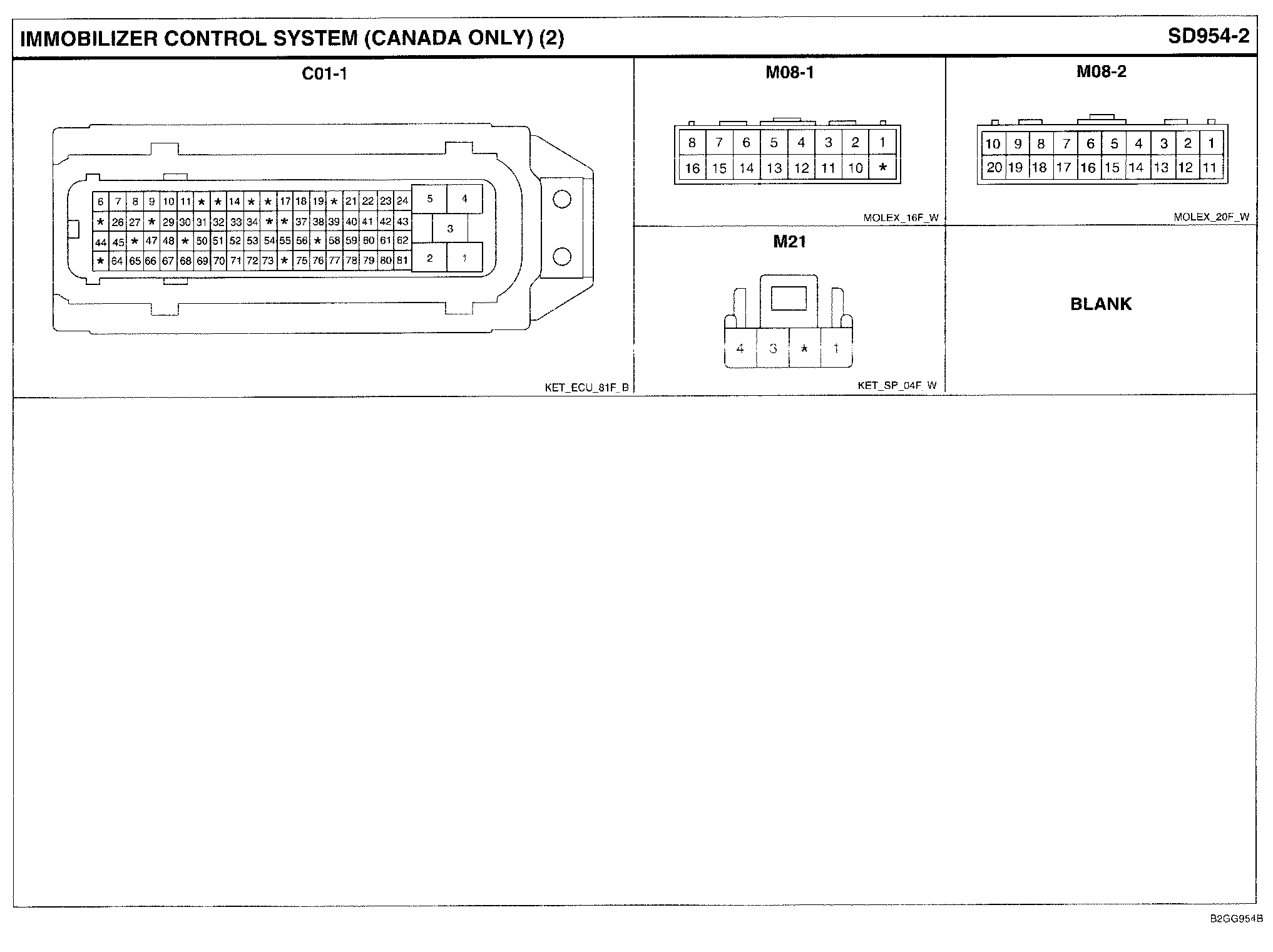 Immobilizer Control System (Canada Only) Connector Pin Outs: