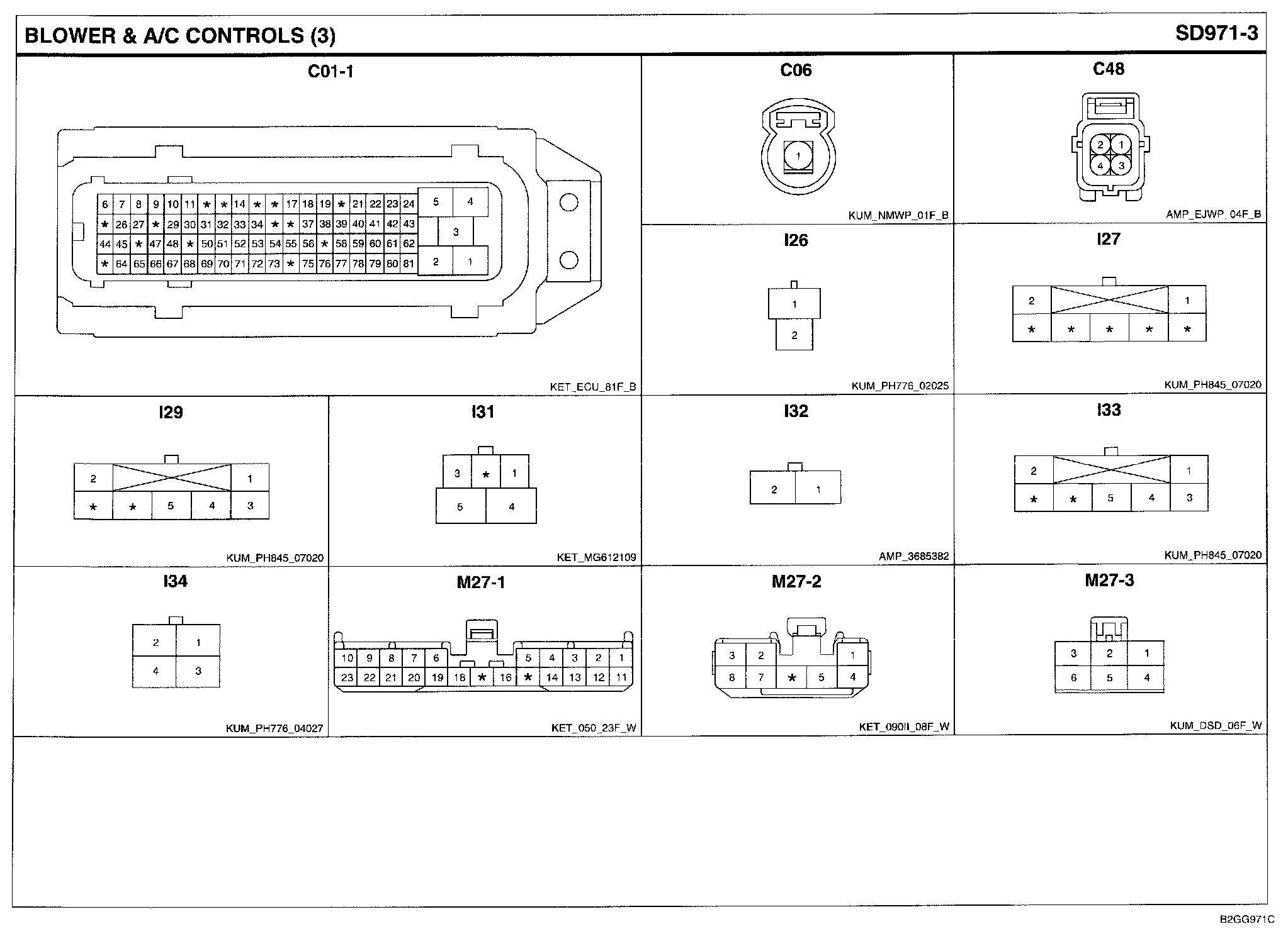 Blower & A/C Controls Connector Pin Outs: