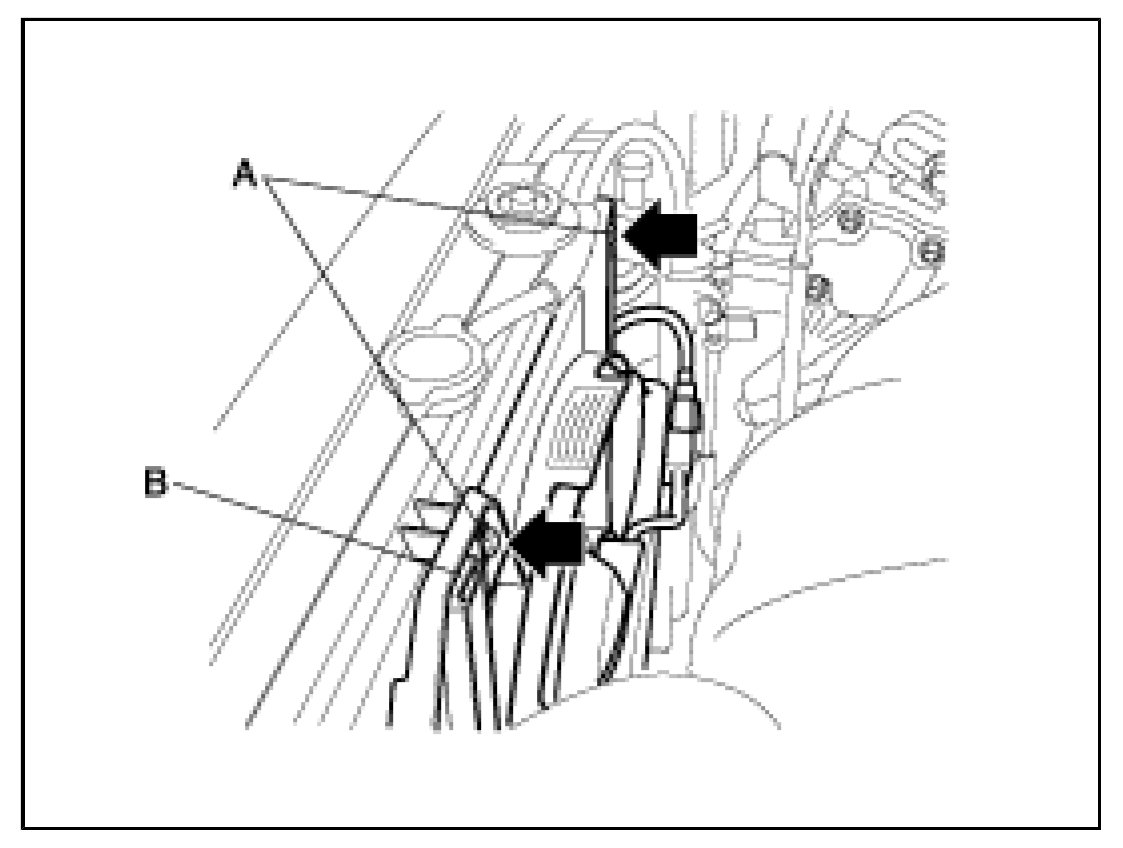 3. Remove the bolts (A), then remove the condenser fan (B) by lifting it up.