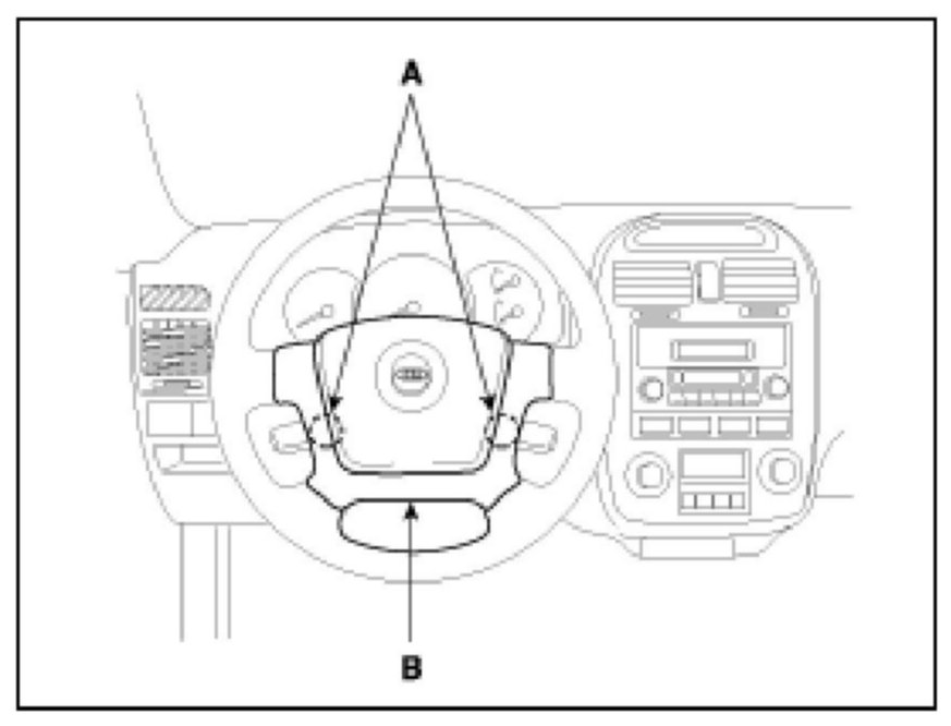 3. Disconnect the horn connector and the air bag module connector, and remove the air bag module (B).