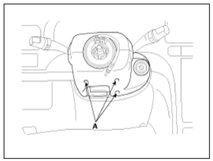 6. Remove the steering column upper and lower shrouds after removing 3 screws (A).