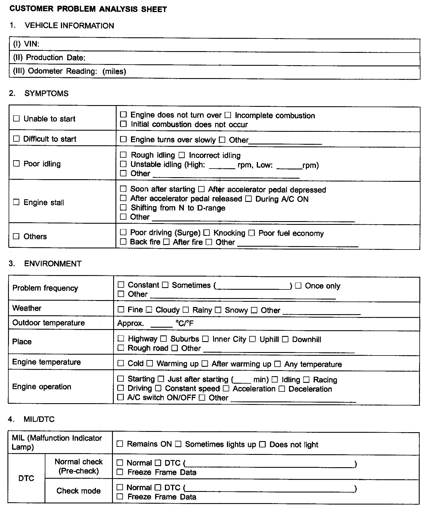 Customer Problem Analysis Sheet