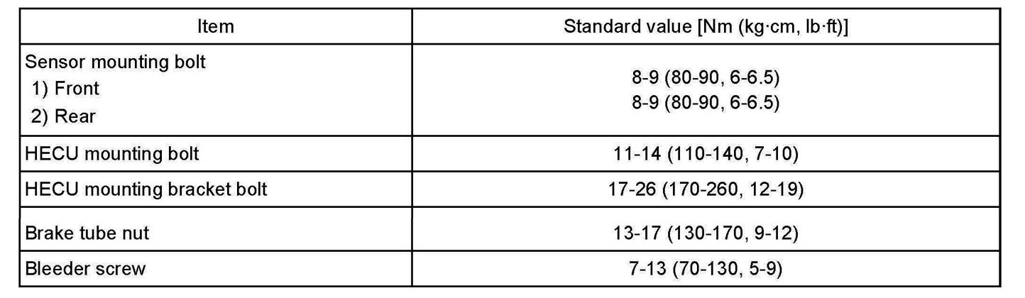 Tightening Torque (ABS & TCS)