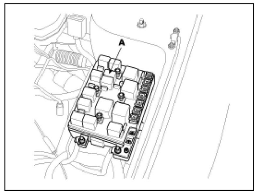 NOTE: To prevent fuel being injected from injectors while the engine is being cranked, remove the fuel pump relay (A) from the fuse box. Crank the engine for no more than 5-10 seconds.
