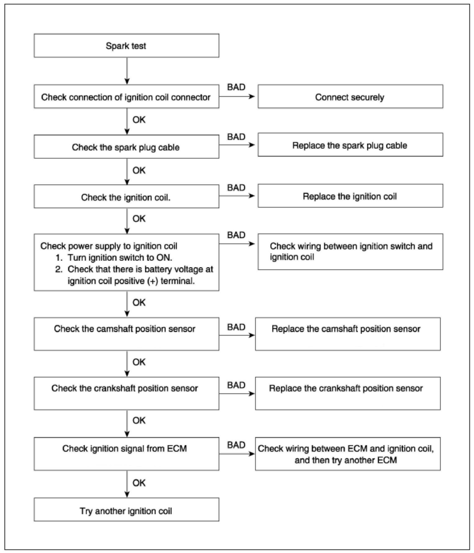 5. Check is spark occurs while engine is being cranked.