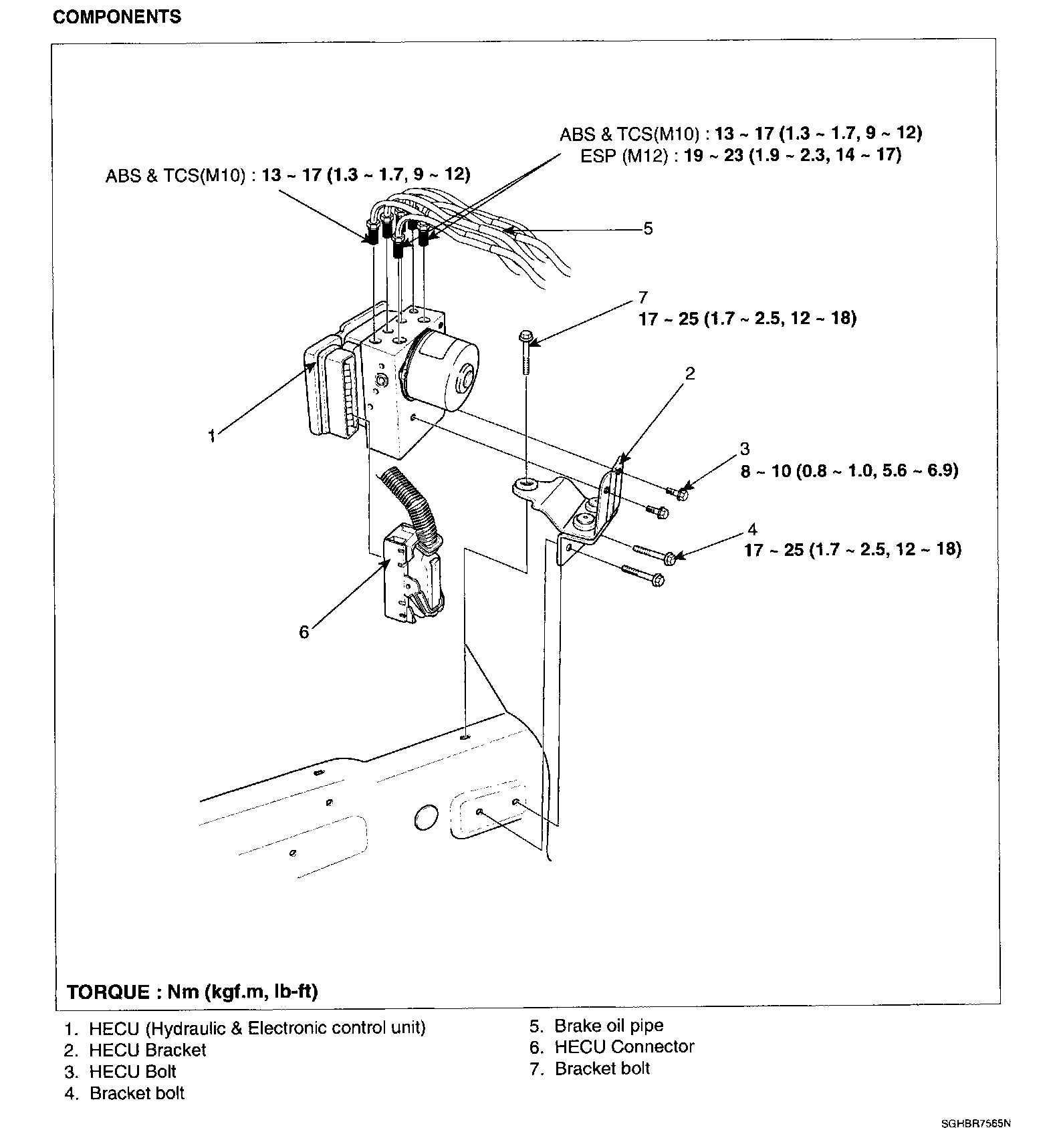 HECU bolt: 8-10 N.m (0.8-1.0 kgf.m, 5.6-6.9 lb-ft)
