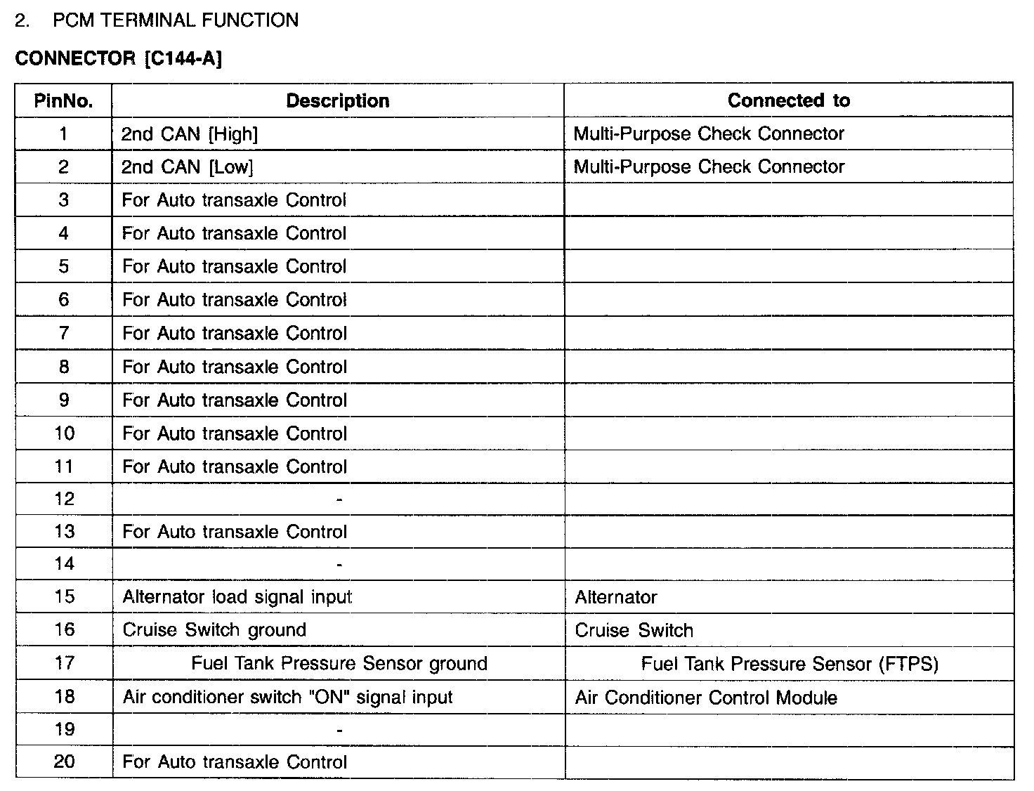 PCM Terminal Function - Connector [C144-A] (Part 2):