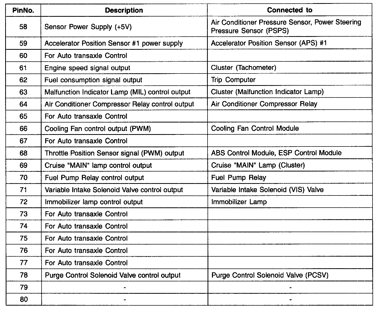 PCM Terminal Function - Connector [C144-A] (Part 3):