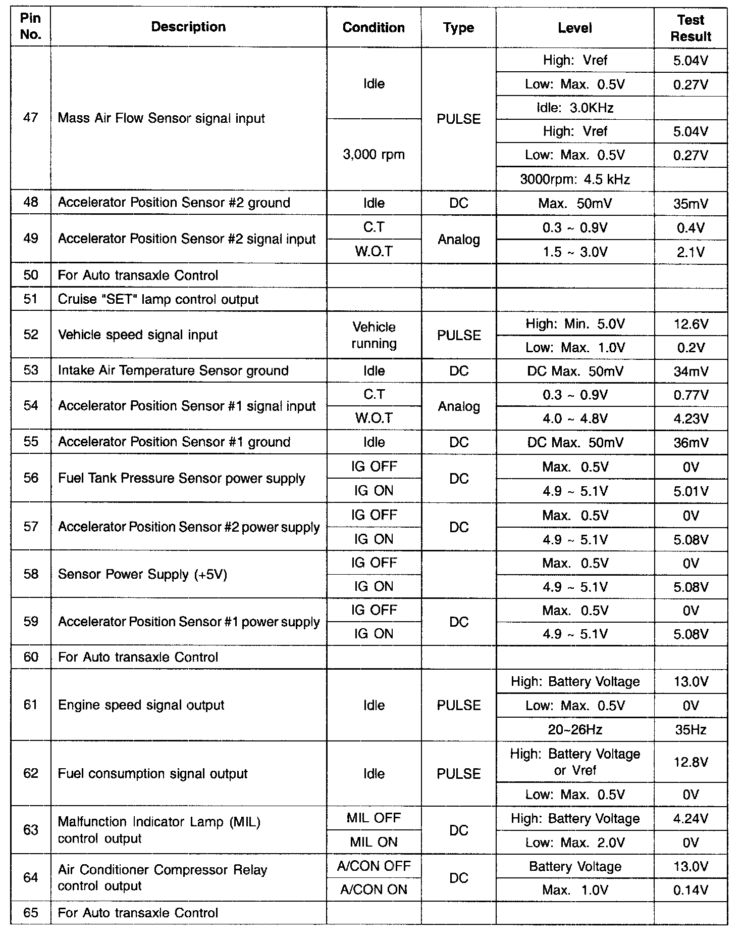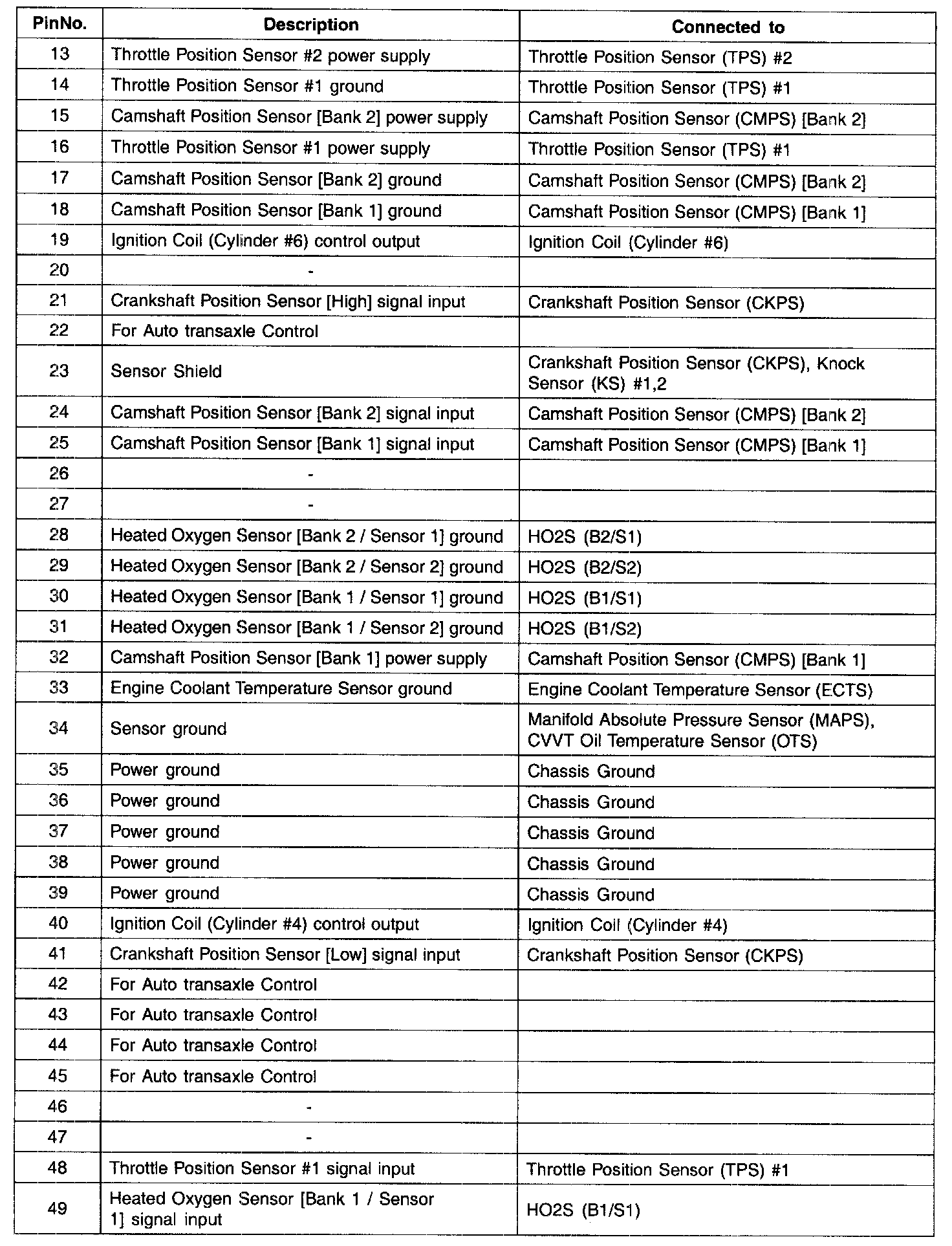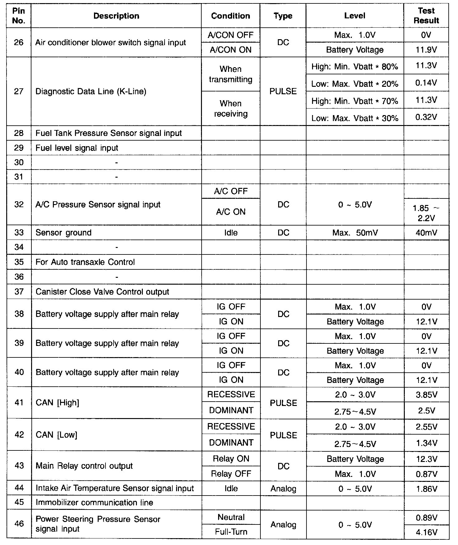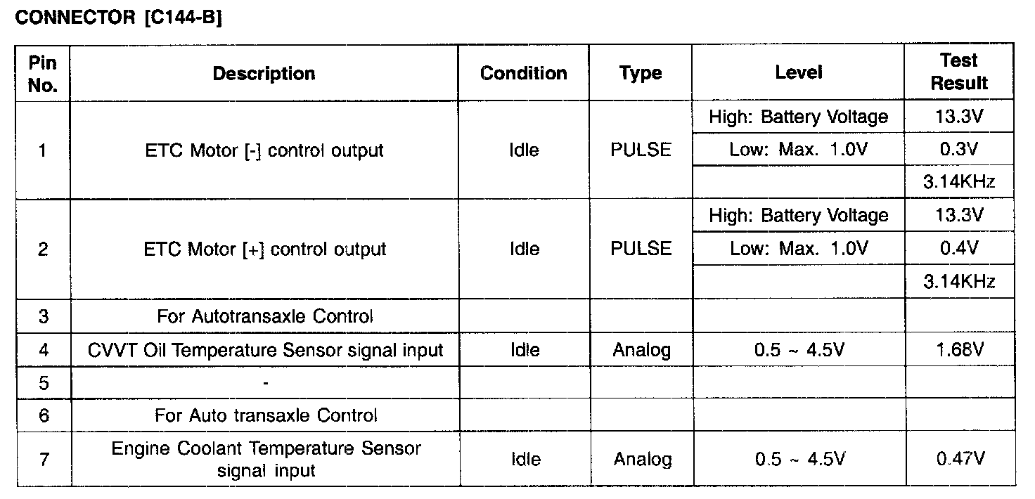 PCM TERMINAL INPUT/OUTPUT SIGNAL - CONNECTOR [C144-B]