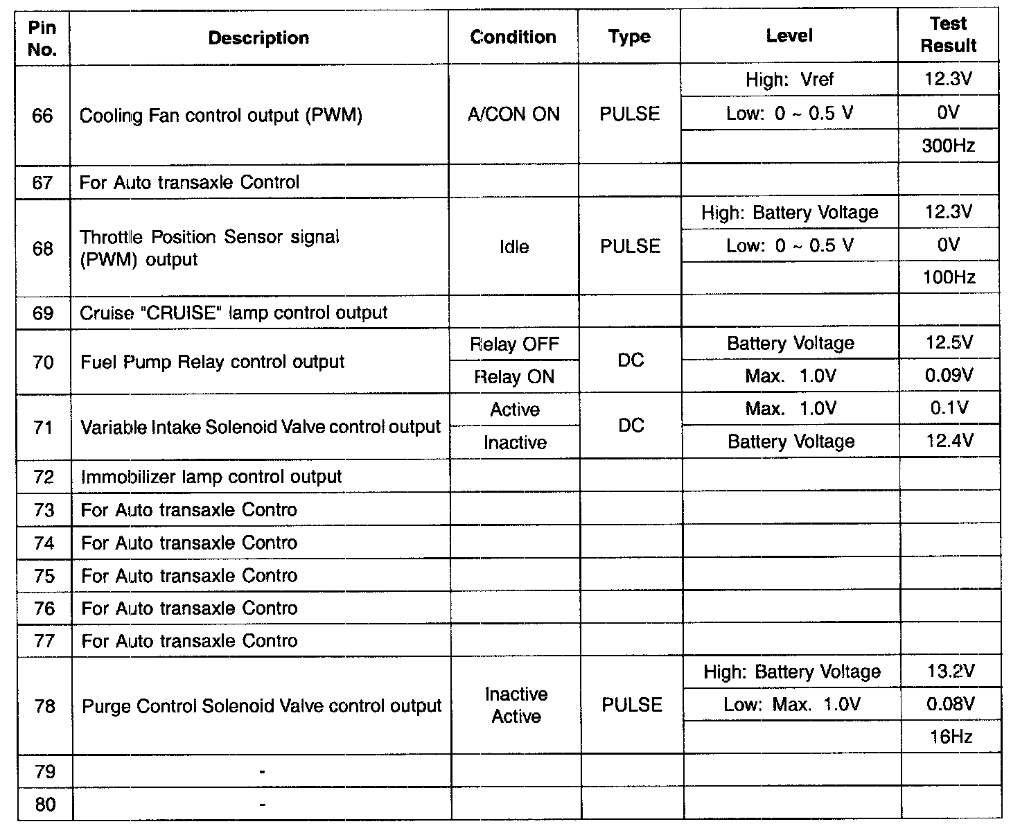 PCM Terminal Input/Output Signal - Connector [C144-A] (Part 3):