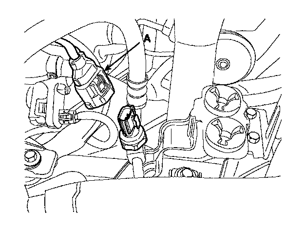 4. Disconnect A/C pressure transducer connector (3P) (A).