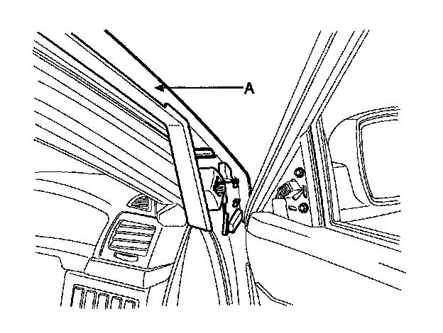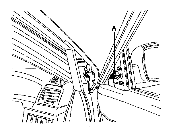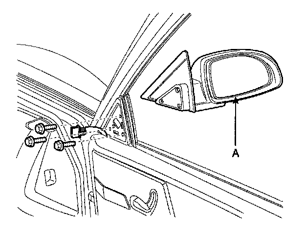 4. Loosen the 3 bolts and screw then remove the door mirror(A).
