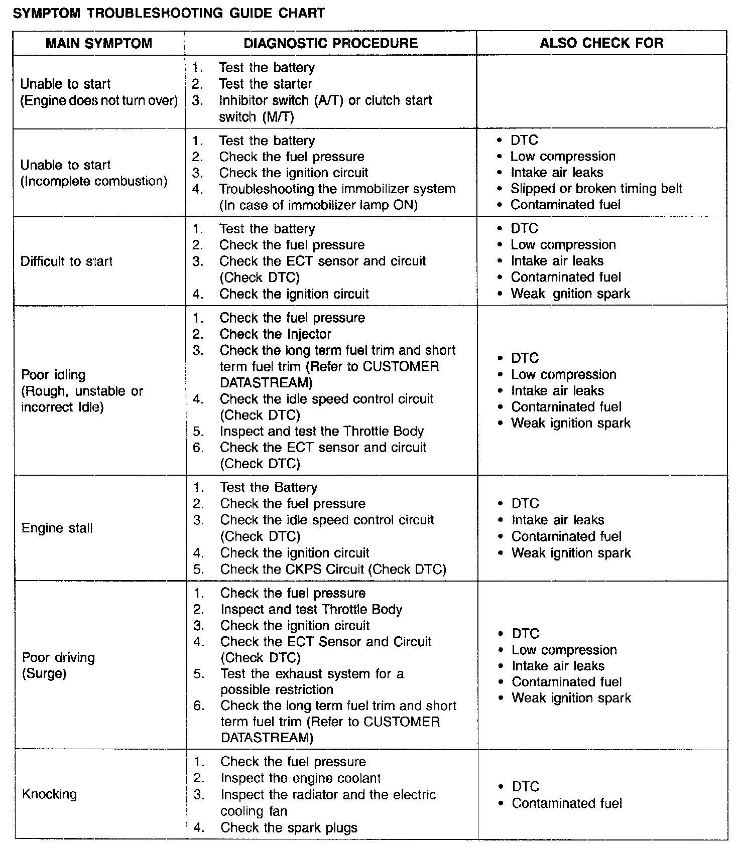Symptom Troubleshooting Guide Chart (Part 1):