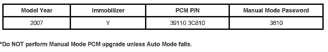 DO NOT attempt to perform a Manual Mode PCM upgrade unless Auto Mode fails. Always follow thew instructions given on the GDS tool in either Auto or Manual Mode. See table above for Manual Mode passwords.