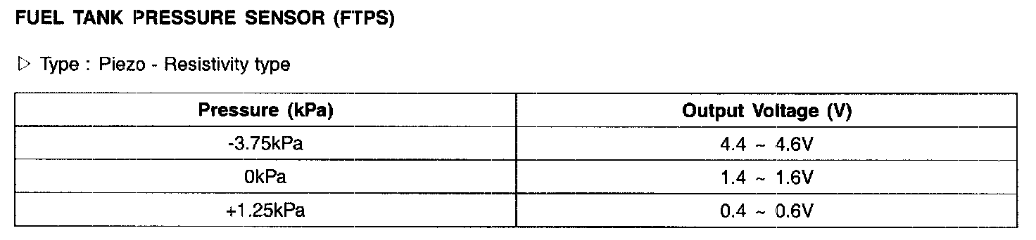 Fuel Tank Pressure Sensor (FTPS) - Specifications: