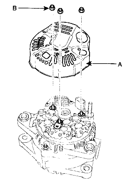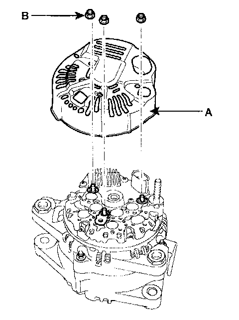 2. Remove the generator cover(A) after removing the three nuts(B).