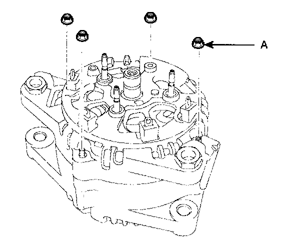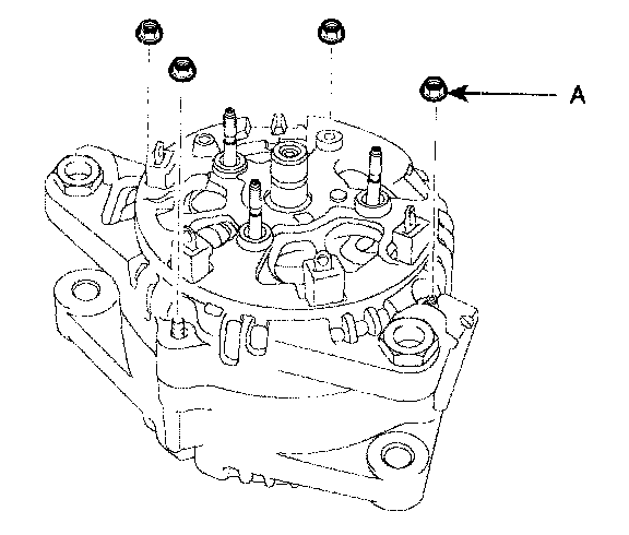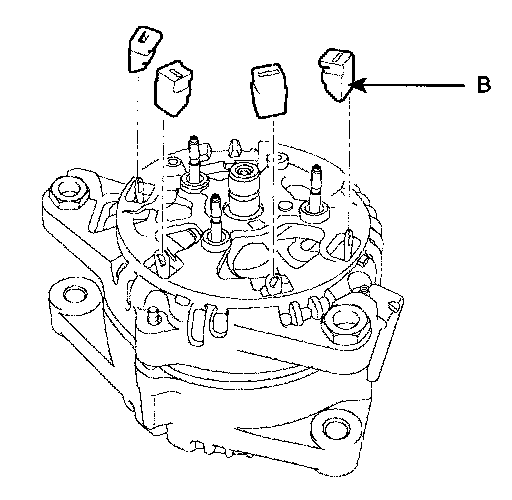 5. Remove the tour nuts(A) and insulators(B).