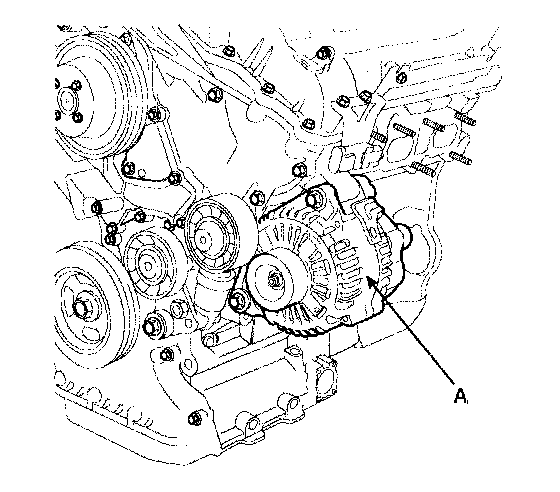 4. Pull out the through bolt and then remove the alternator(A).