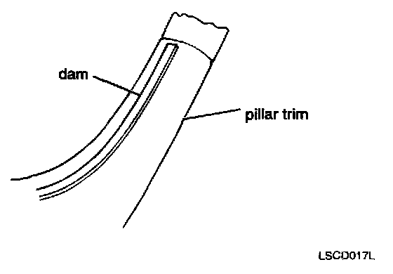 7. Install the self-adhesive foam dam to the body where the original dam had been.