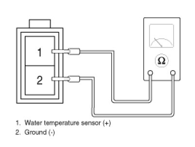 2. Using the multi-tester, Measure resistance between terminal "1" and "2" of water temperature sensor.