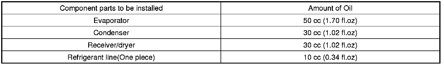 2. Compressor (PAG) oil varies according to compressor model. Be sure to use oil specified for the model of compressor.