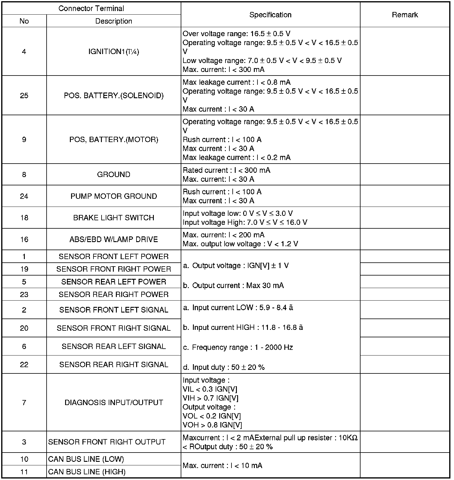 ABS CONNECTOR INPUT/OUTPUT