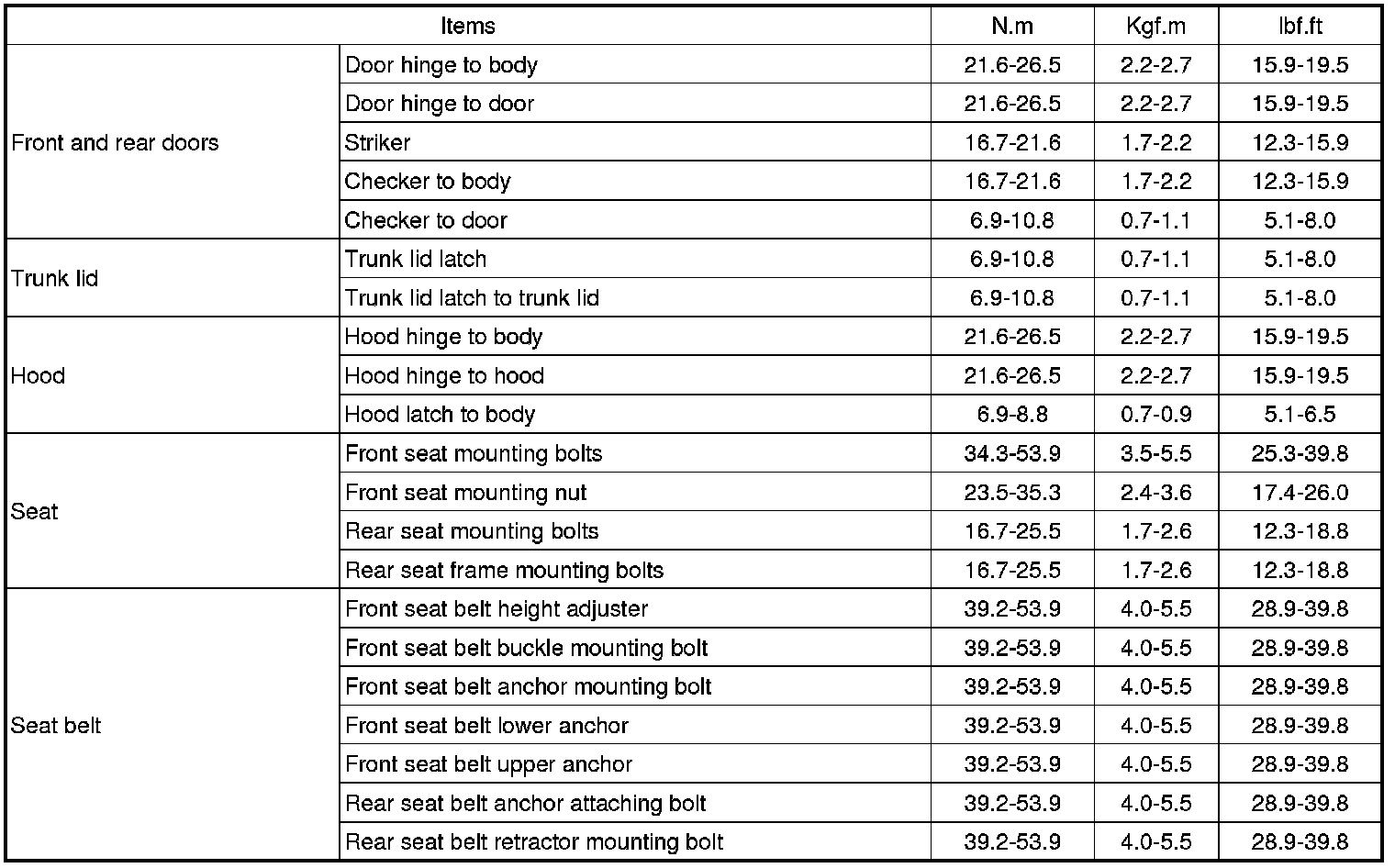 TIGHTENING TORQUE