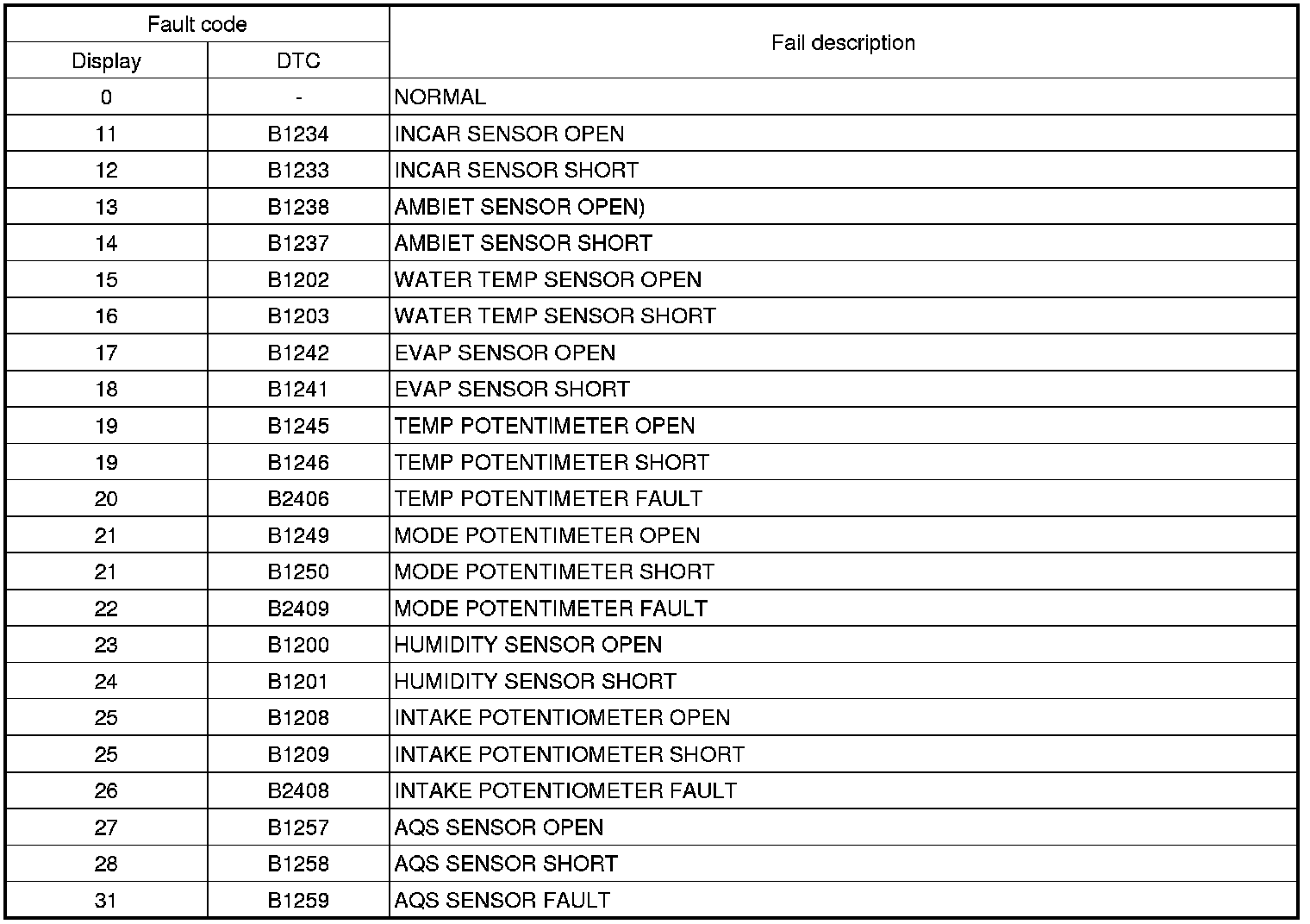 5. Fail safeIn-car temperature sensor: Control with the value of 25°C(77°F)