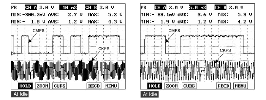 1. Check signal waveform of CMPS and CKPS using a scantool.