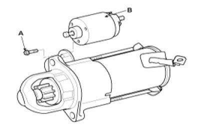 1. Disconnect the M-terminal (A) on the magnet switch assembly (B).