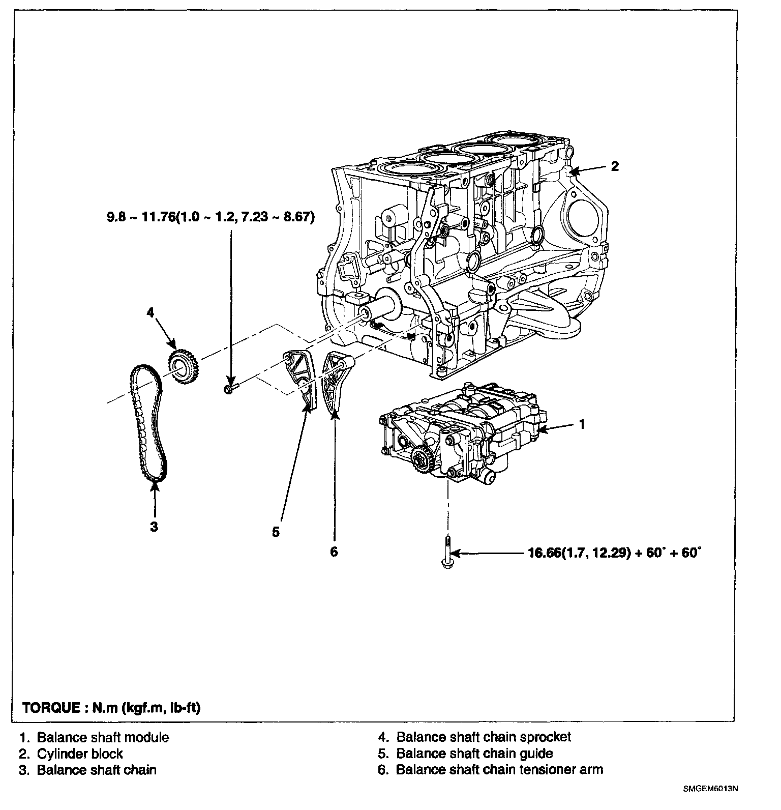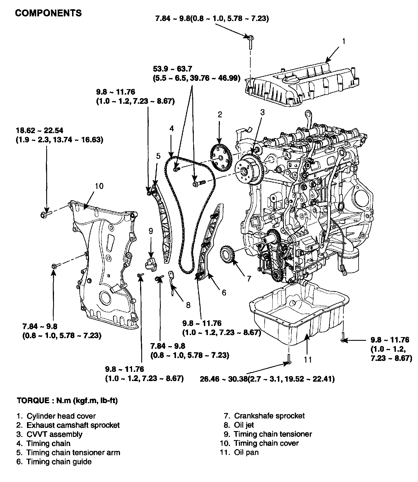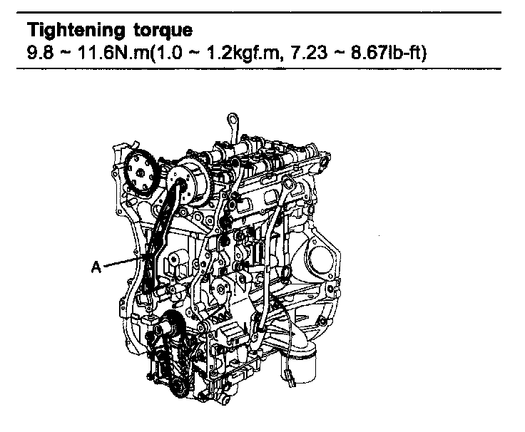 Tightening torque 9.8 - 11.76 Nm (1.0 - 1.2 kgf.m, 7.23 - 8.67 ft. lbs.)