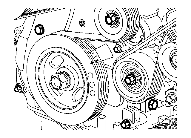 NOTE: Tensioner pulley bolt is left-handed screw