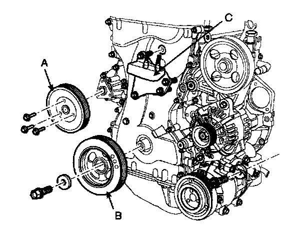 10. Remove the crankshaft pulley (B).