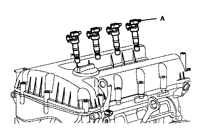 13. Remove the ignition coil (A).