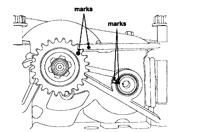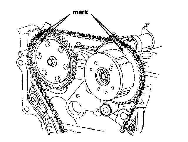 To install the timing chain with no slack between each shaft (cam, crank), follow the below procedure.