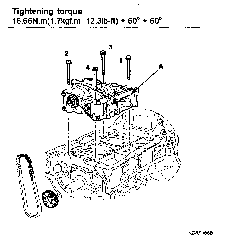 3) Install oil pan (A). Uniformly tighten the bolts in several passes.